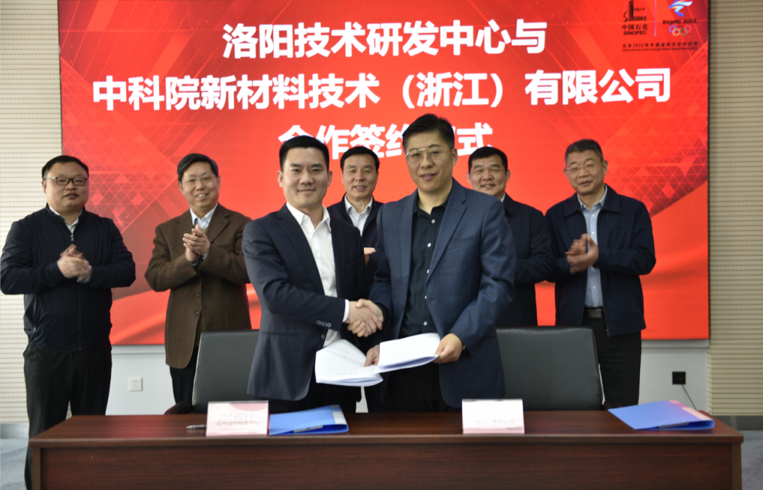 4月12日,中科院新材料技術(浙江)有限公司與中石化煉化工程(集團)股份有限公司洛陽技術研發中心(以下簡稱:SEG研發中心)舉行合作簽約儀式。公司總經理趙偉、首席專家王國良、副總經理張涵,SEG研發中心總經理韓海波、黨委書記劉金龍、集團公司高級專家郝代軍及相關部門負責人參會。